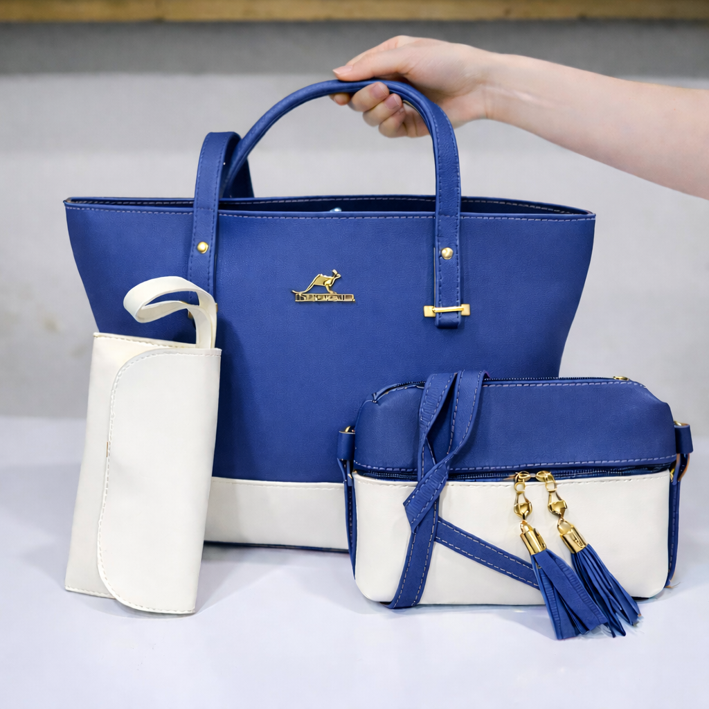 It’s a blend of minimalist design and maximum function. This stylish set includes a top-handle shoulder bag, a cross-body bag, and a matching wallet/purse, making it a must-have for modern women. Ideal for any occasion, it offers versatility and elegance in a vibrant lilac hue, making it a standout in ladies handbags brands.